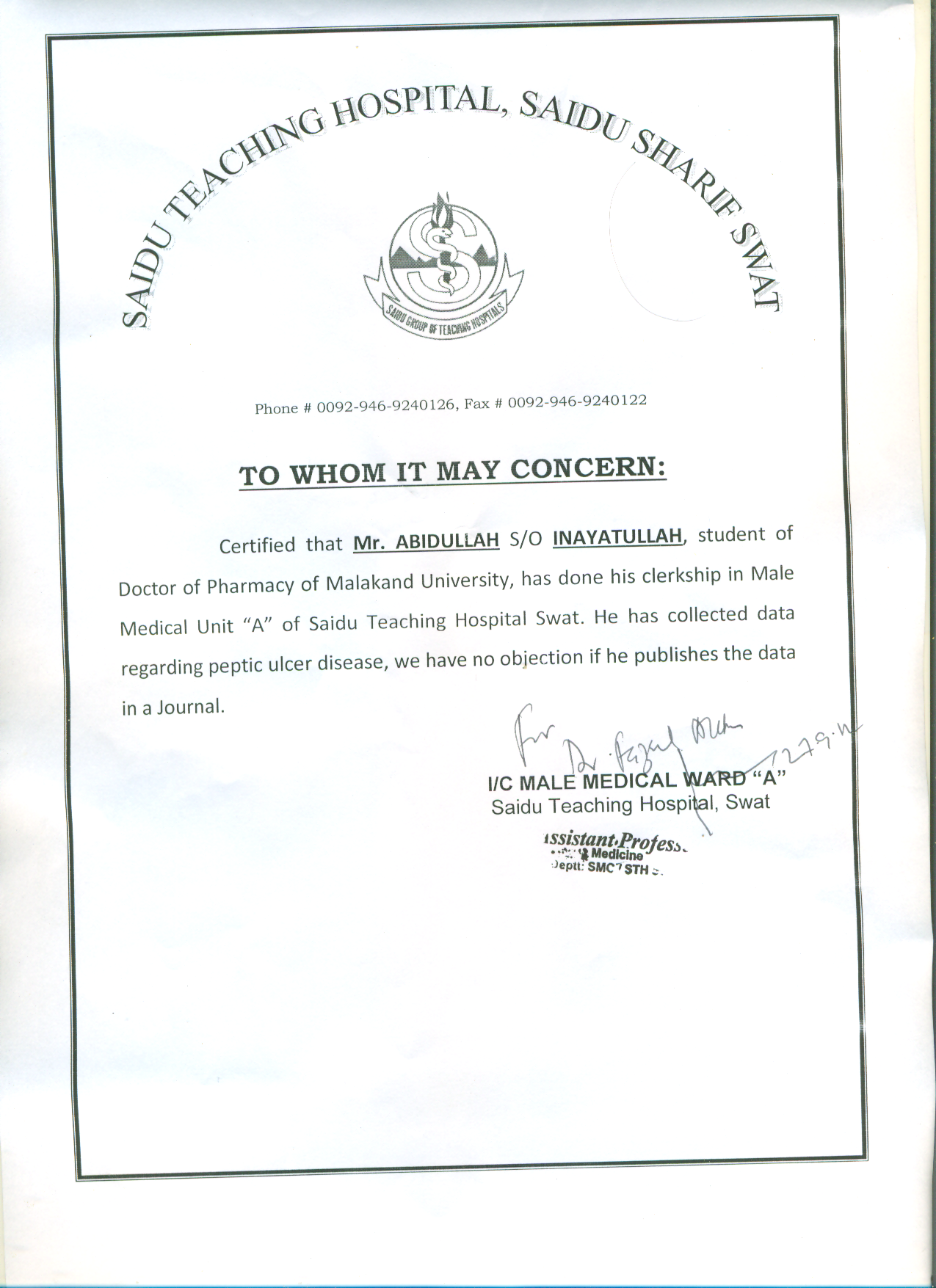 Nawaz M, Jehanzaib M, Khan K, Zari M: Role of barium meal examination in diagnosis of peptic ulcer. J Ayub Med Coll Abbotabad 2008; 20(4): 59-61.