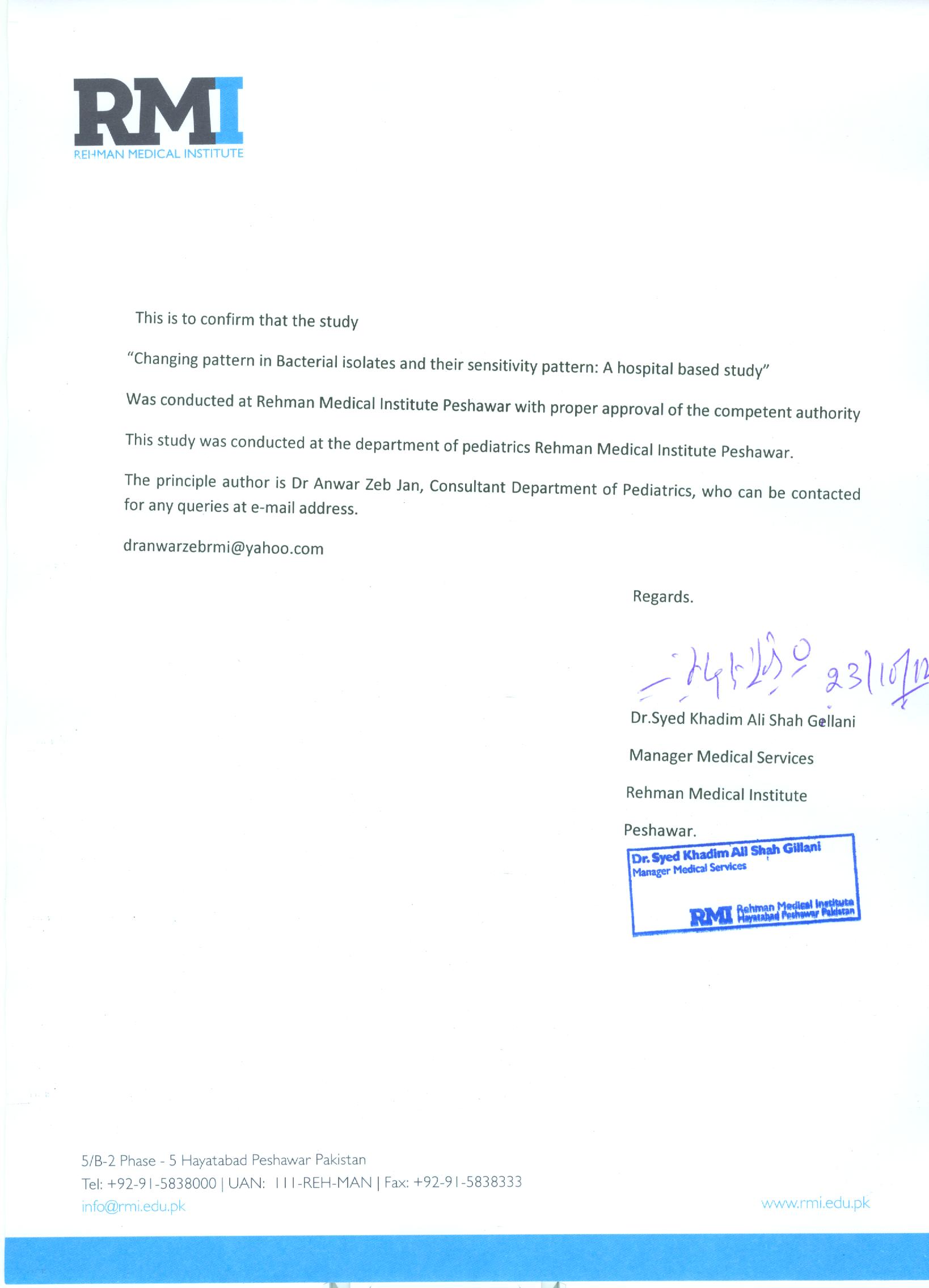 Rahman S, Hameed A, Roghani MT, Ullah Z. Multidrug resistant neonatal sepsis in Peshawar, Pakistan. Arch Dis Child Fetal Neonatal Ed 2002; 87 (1): F52-4.