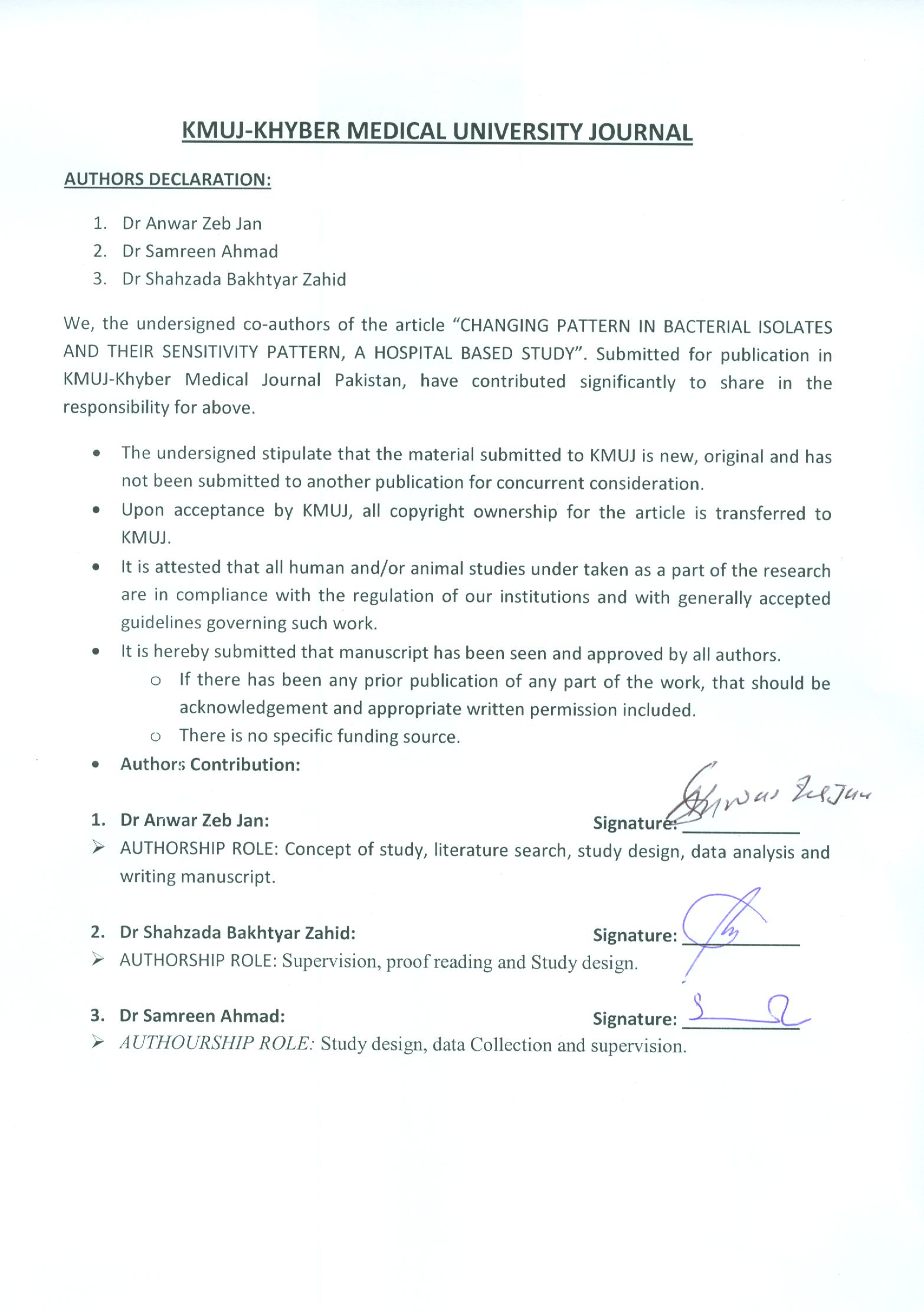 Ahmad A, Hussain W, Lamichhane A, Aslam M, Riaz L. Use of antibiotic in neonatal sepsis at neonatal unit of tertiary care hospital. Pak Paed J 2011; 35(1): 3-7.
