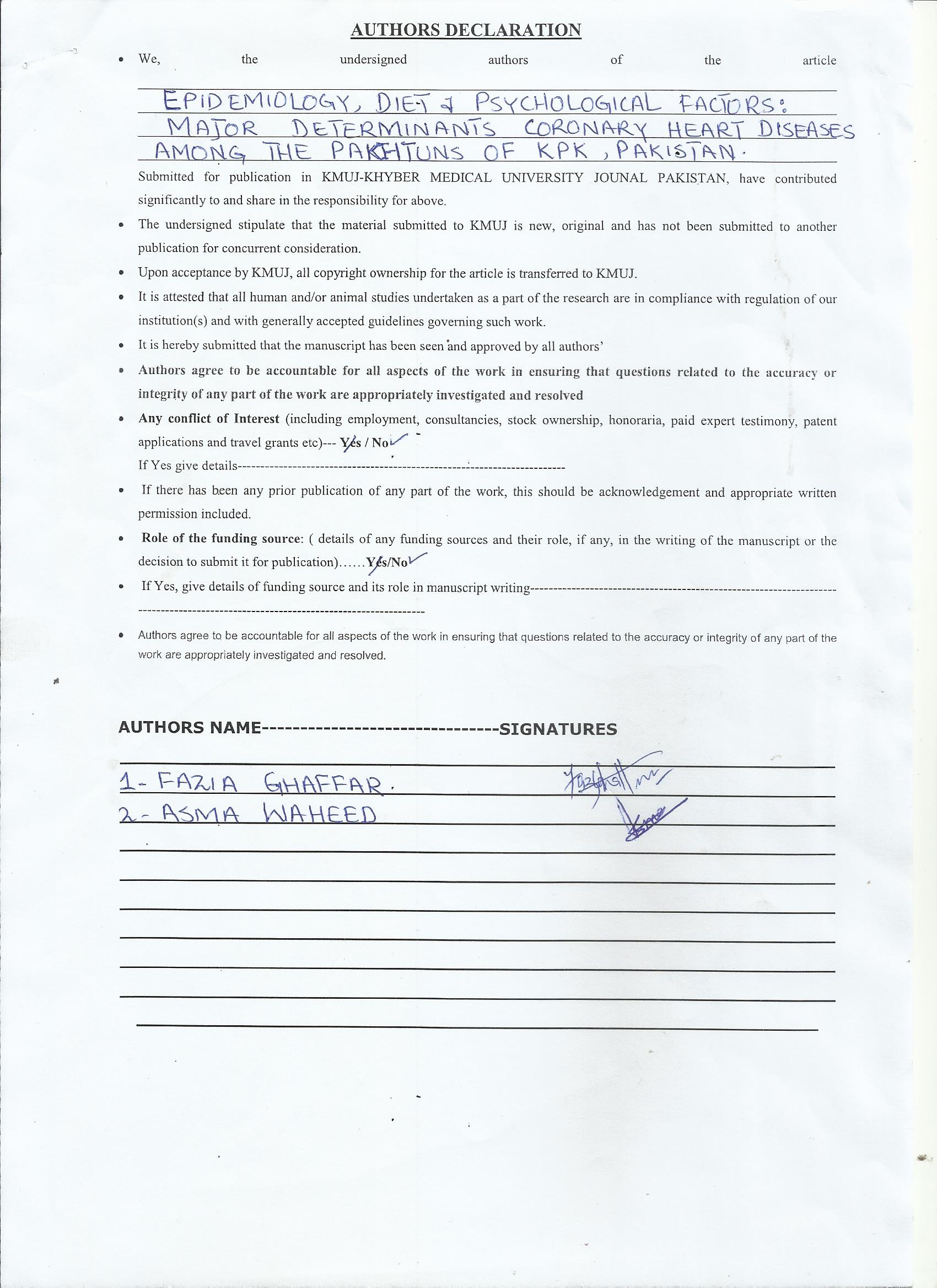 Akhtar S and Ashar N. Risk factors of cardiovascular disease in district swat. J Pak Med Assoc 2015; 66(9): 1001-1004.