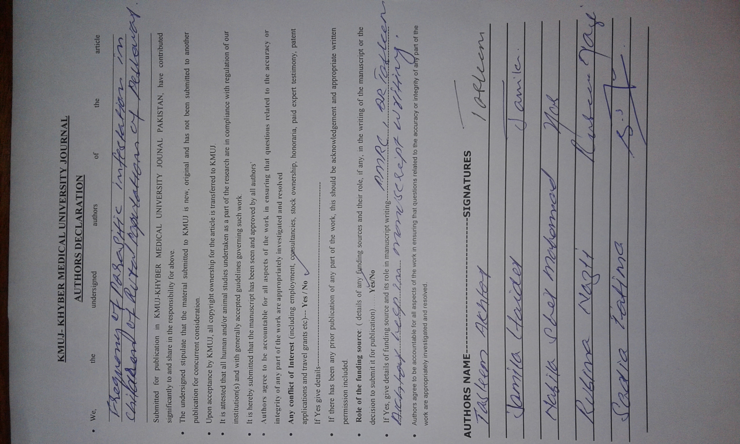 PREVALENCE OF PARASITIC INFESTATION IN CHILDREN OF A RURAL COMMUNITY OF PESHAWAR