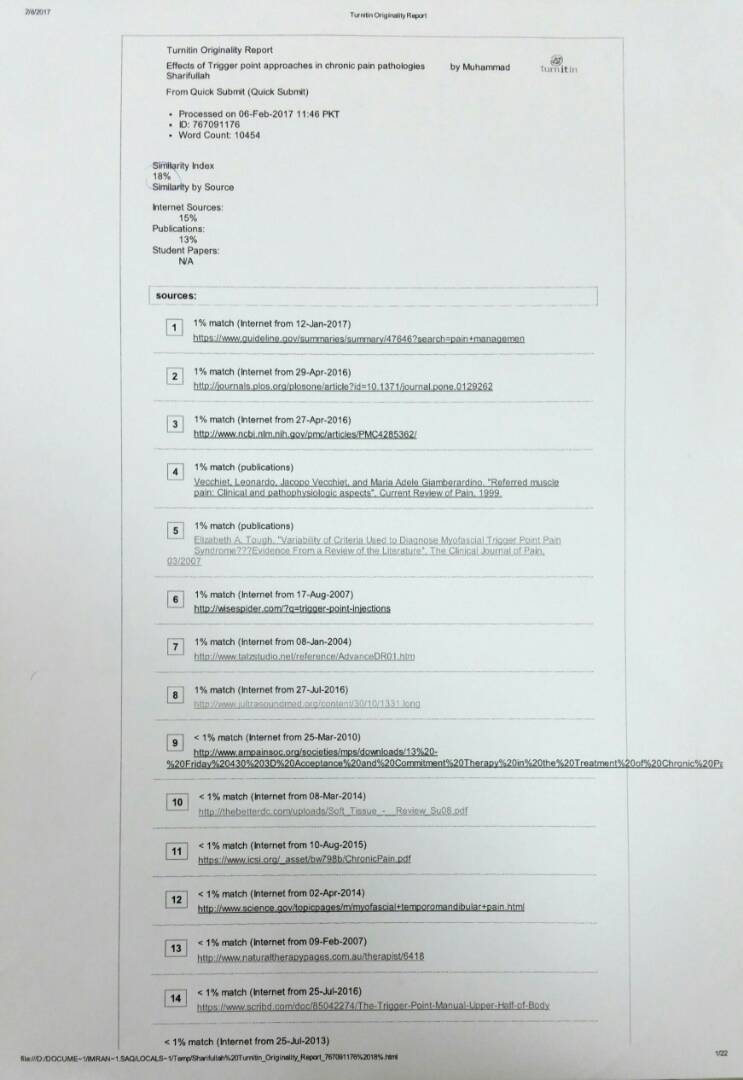 OBJECTIVE: To determine the effect of different trigger points approaches in improving chronic myofascial pain.