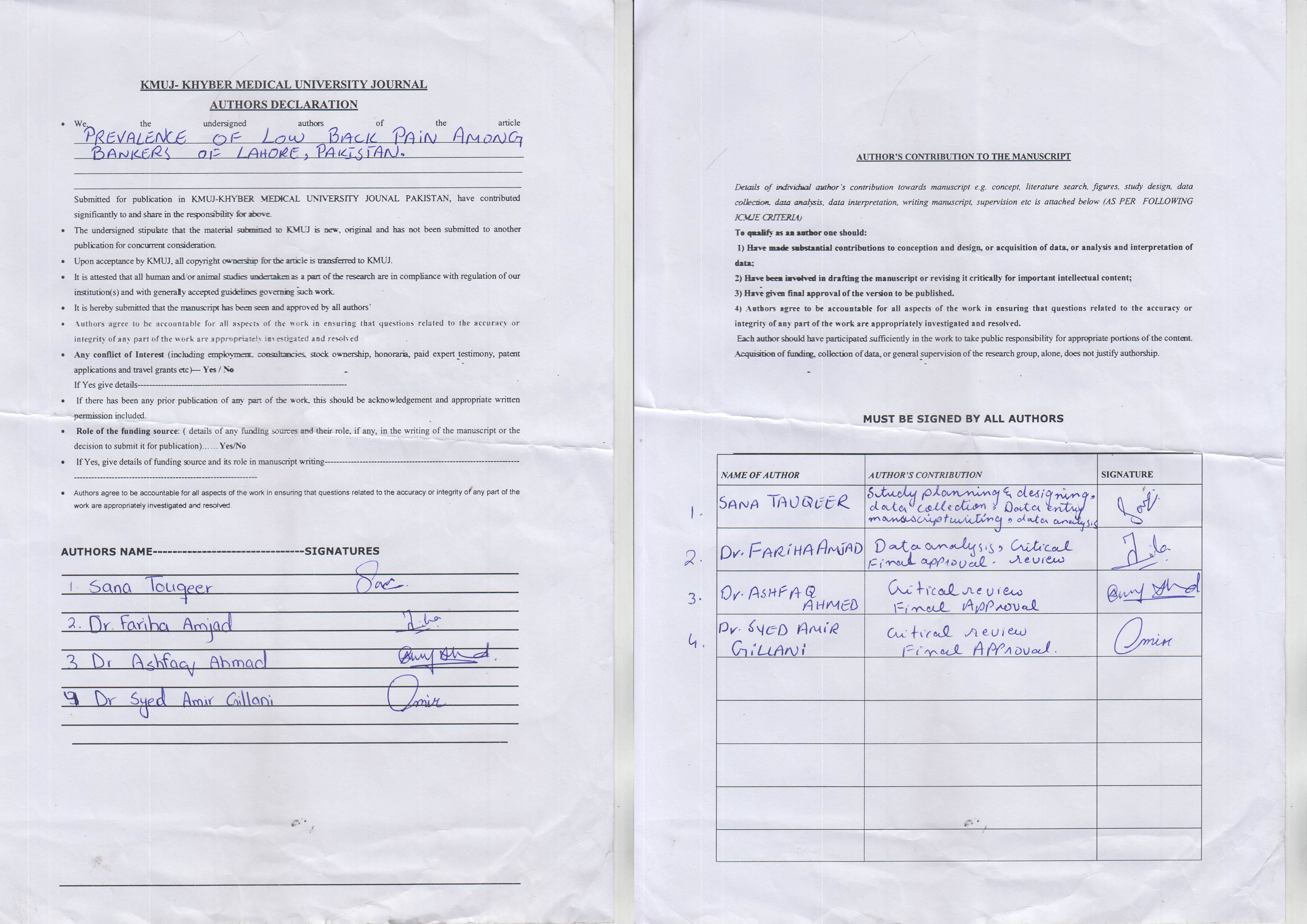 PREVALENCE OF LOW BACK PAIN AMONG BANKERS OF LAHORE, PAKISTAN