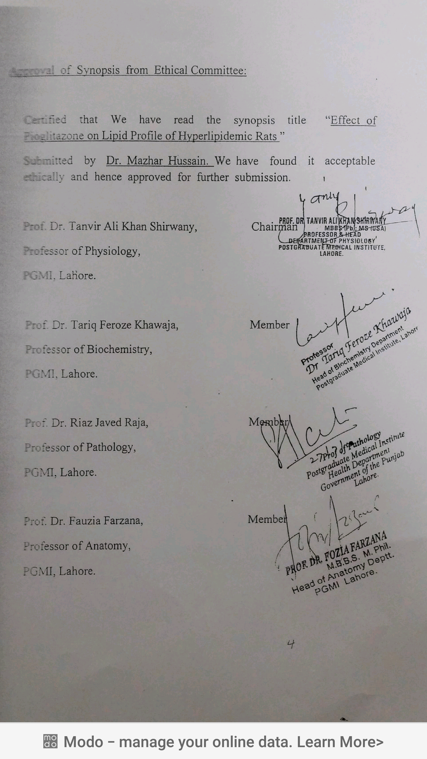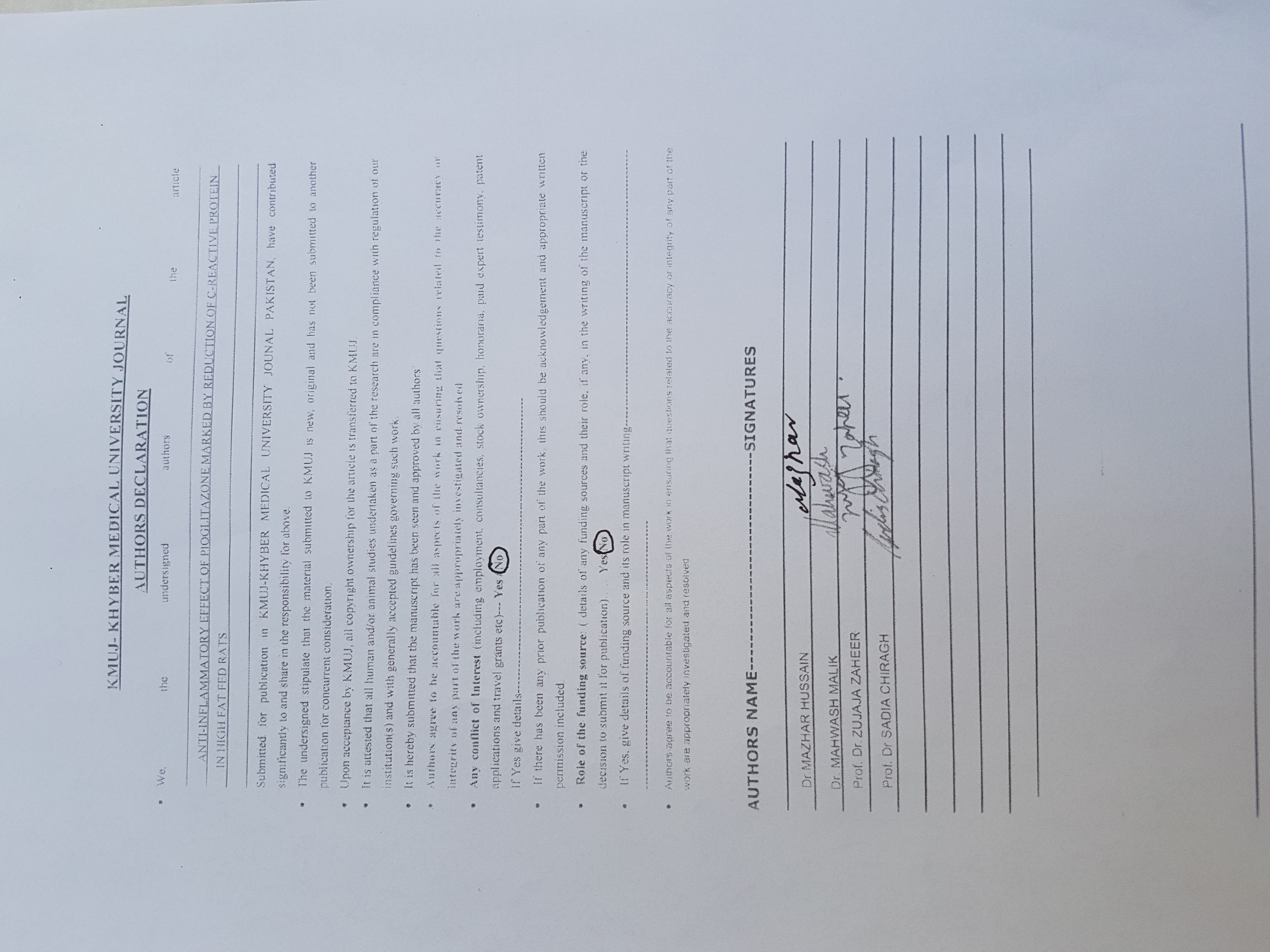Hussian M, Arain AQ, Chiragh S. Pioglitazone improves serum lipid profile in diet induced hyperlipidaemicnon diabetic rats. J Pak Med Assoc 2016 Oct;66(10):1286-90.